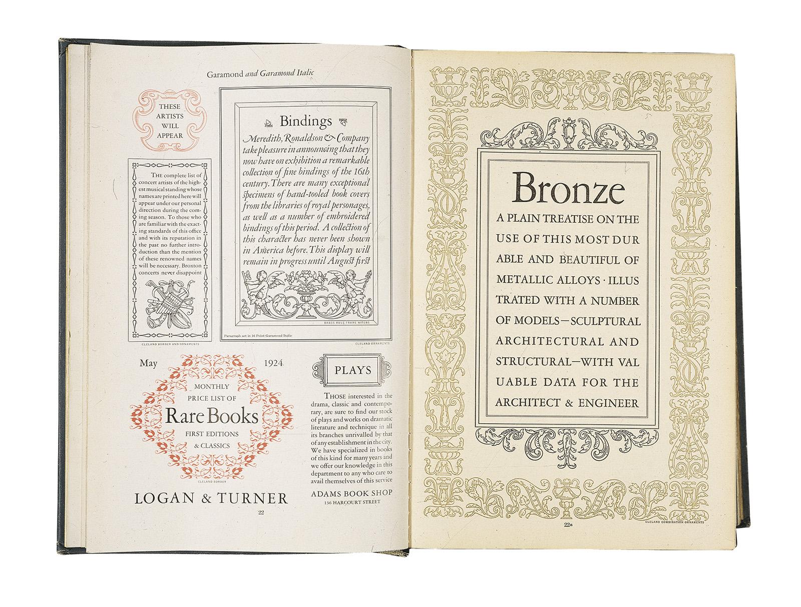 10–43. Pages from American Type Founders’ Specimen Book and Catalogue Display printing of its Garamond revival with Cleland ornaments. Date 1923CE Place Add Tags Tags: Filter by Motivation Audience General Combined Add Note notes