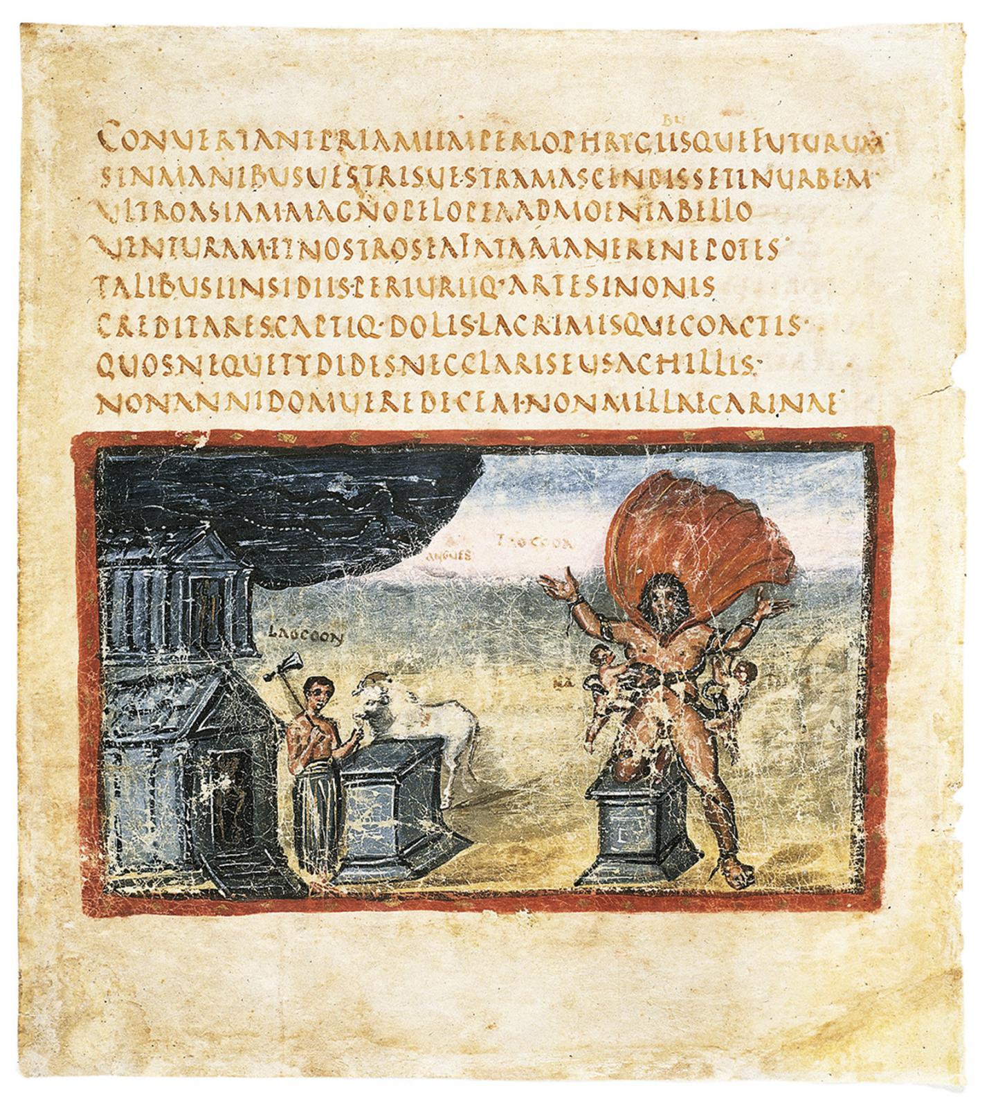 4–1. The Vatican Vergil The death of Laocoön. Two scenes from the life of Laocoön are shown in one illustration. Date 390CE–425CE Place Add Tags Tags: Filter by Motivation Audience General Combined Sandie Maxa manuscript Add Note notes
