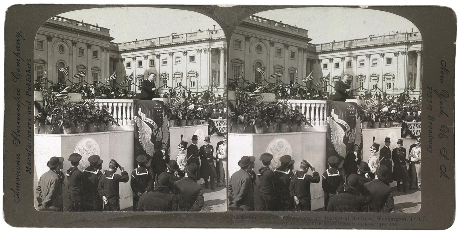 9–45. Stereocard depicting President Theodore Roosevelt delivering his inaugural address Date 1905CE Place Add Tags Tags: Filter by Motivation Audience General Combined Add Note notes