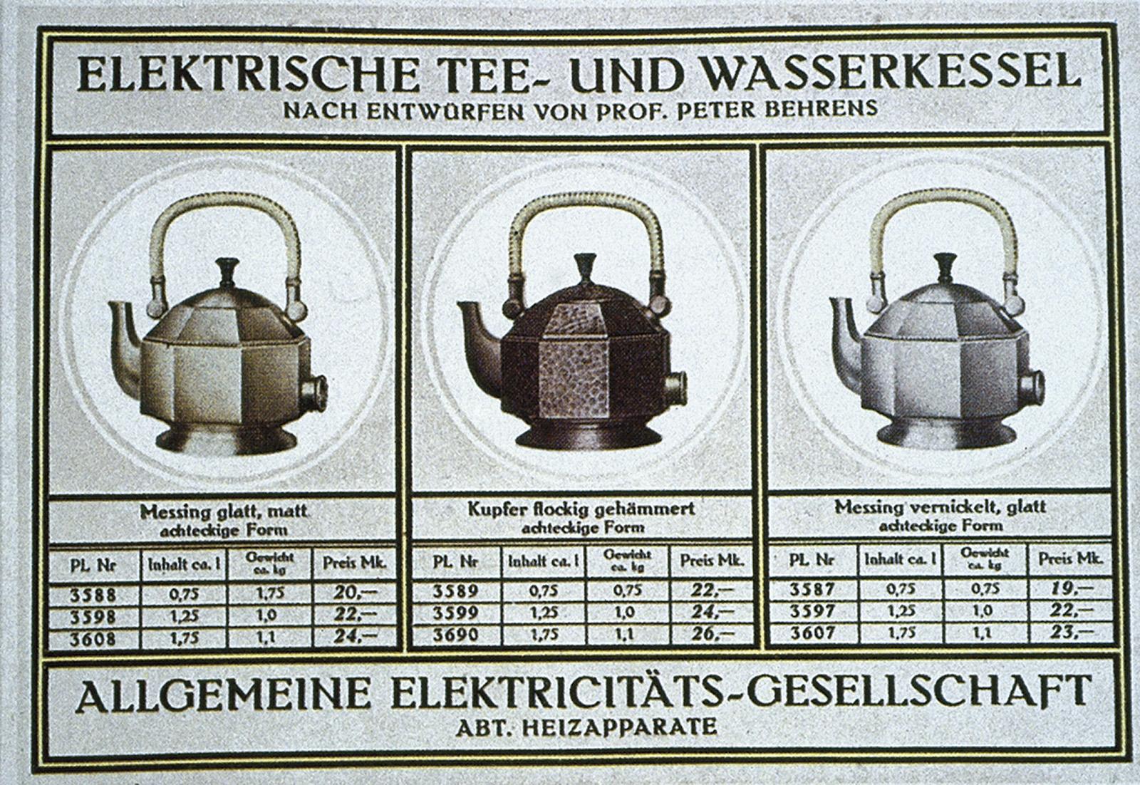 12–37. Peter Behrens, catalogue page for AEG teakettles