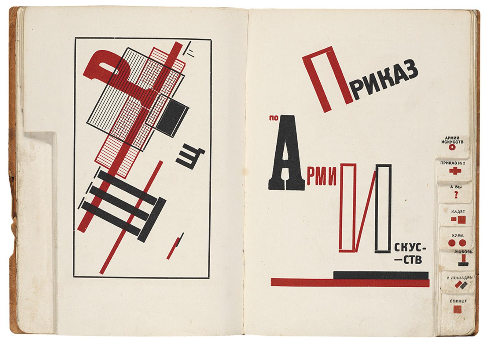 15–15. El Lissitzky, pages from For the Voice showing illustration for the poem “Left March,” by Vladimir Vladimirovich Mayakovski