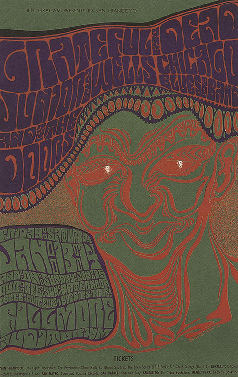 21–41. Wes Wilson, concert poster for the Grateful Dead, Junior Wells Chicago Blues Band, and the Doors
