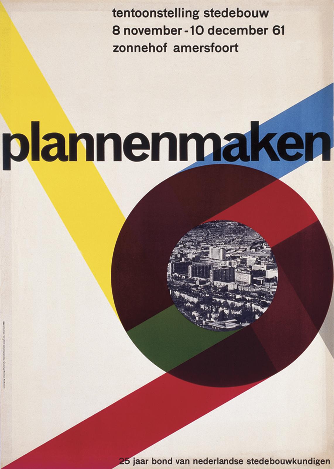 23–35. Benno Wissing, poster for the exhibition Plannenmaken: 25 jaar bond van Nederlandse stedebouwkundigen (Plan Making: Alliance of Dutch Urban Development, 25 Years)