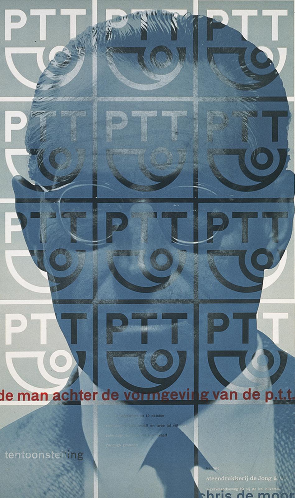 23–36. Pieter Brattinga, poster for exhibition De man achter de vormgeving van de PTT (The Man Behind the Design for the Dutch Post Service)