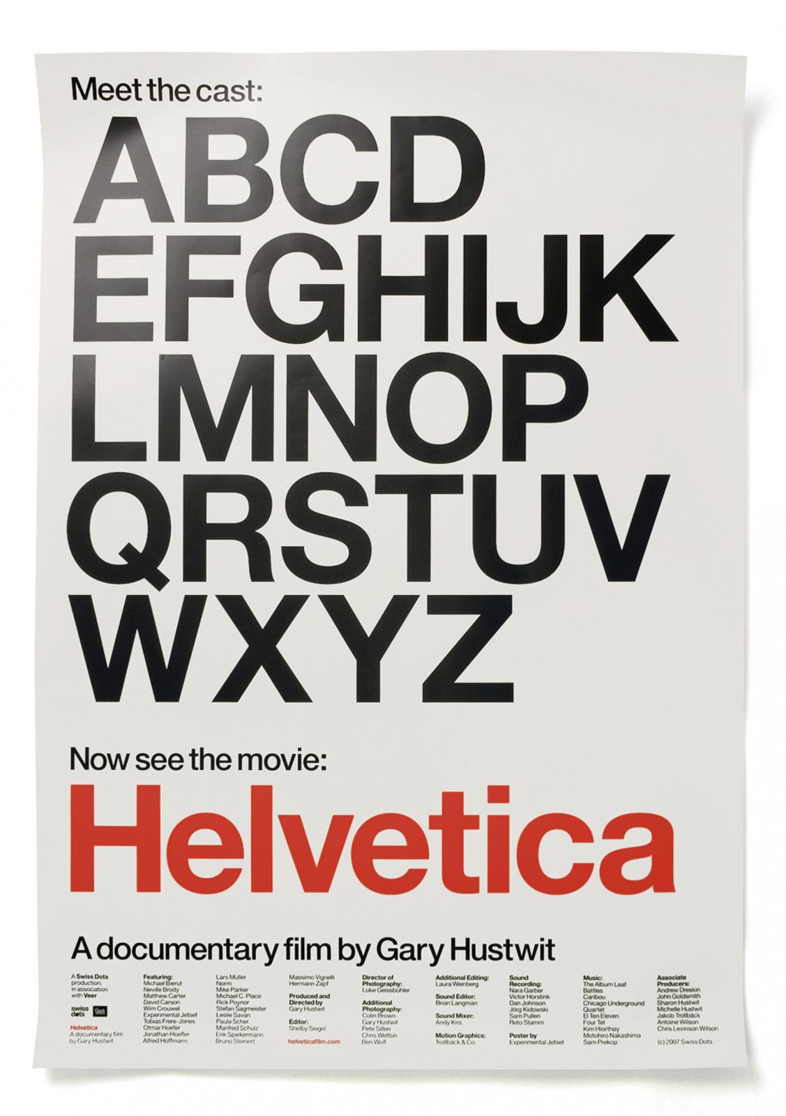 23–55. Experimental Jetset, “Meet the Cast” movie poster for Helvetica
