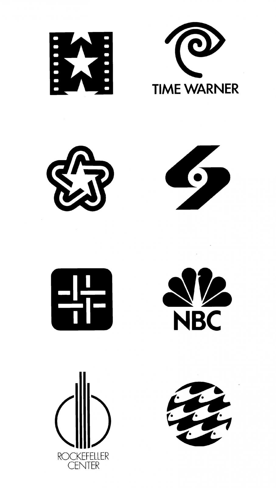 20–30. Chermayeff & Geismar Associates, trademarks for (left to right, top to bottom) the American Film Institute, Time Warner, the American Revolution Bicentennial, Screen Gems, Burlington Industries, the National Broadcasting Company, Rockefeller Cente