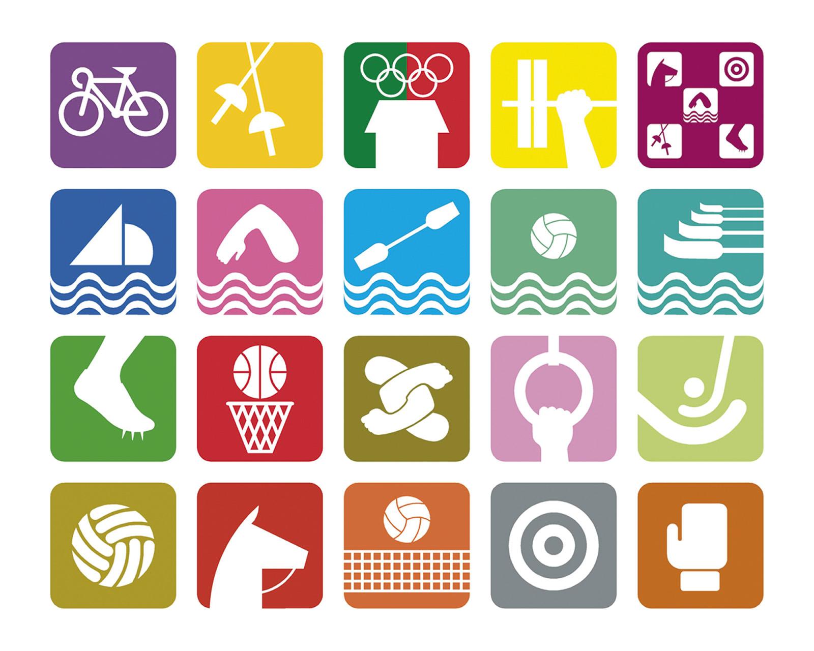 20–49. Lance Wyman, Eduardo Terrazas, and Manuel Villazón, sports symbols for the Nineteenth Olympiad
