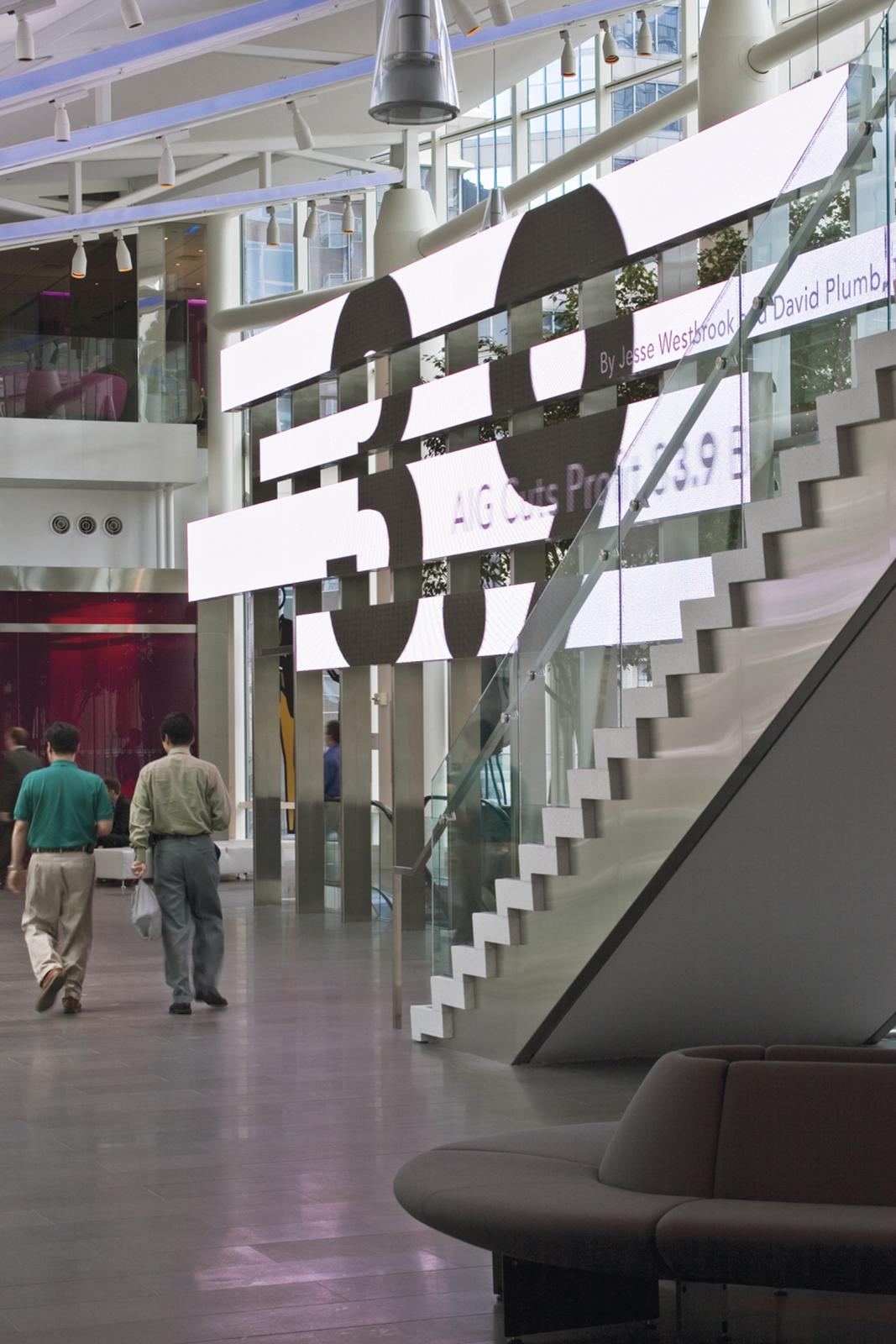 24–57. Pentagram (Lisa Strausfeld), dynamic display of financial information for the Bloomberg LP headquarters in New York