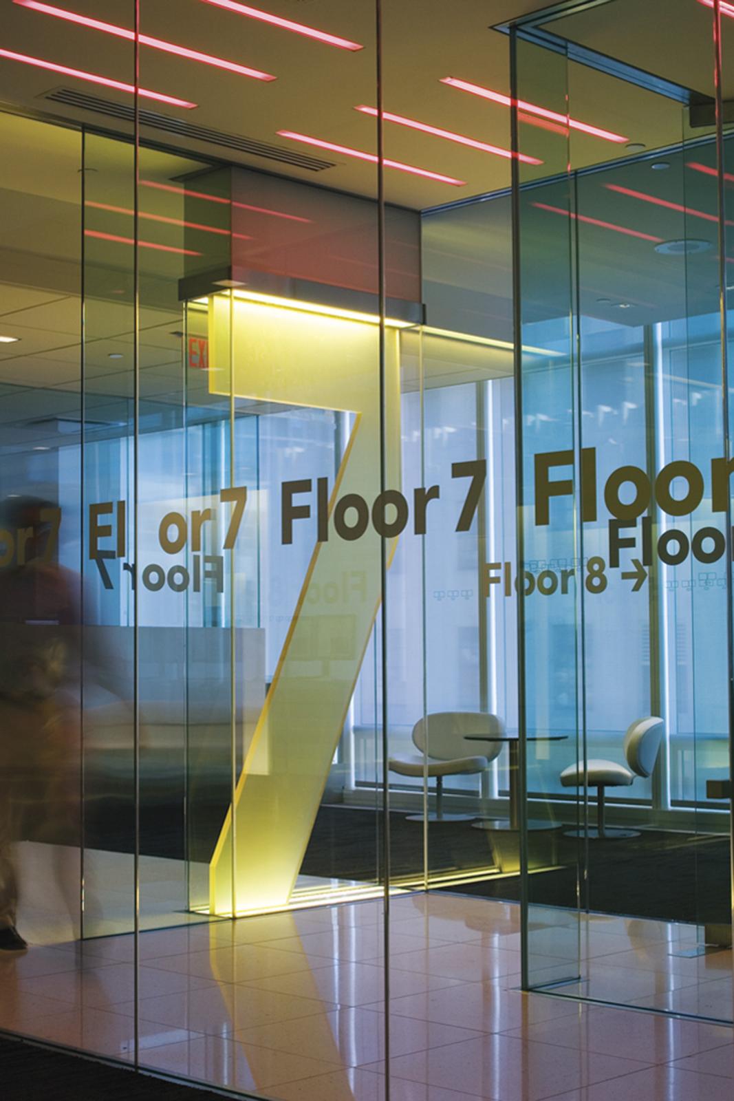 24–58. Pentagram (Paula Scher), environmental graphics for Bloomberg LP corporate headquarters