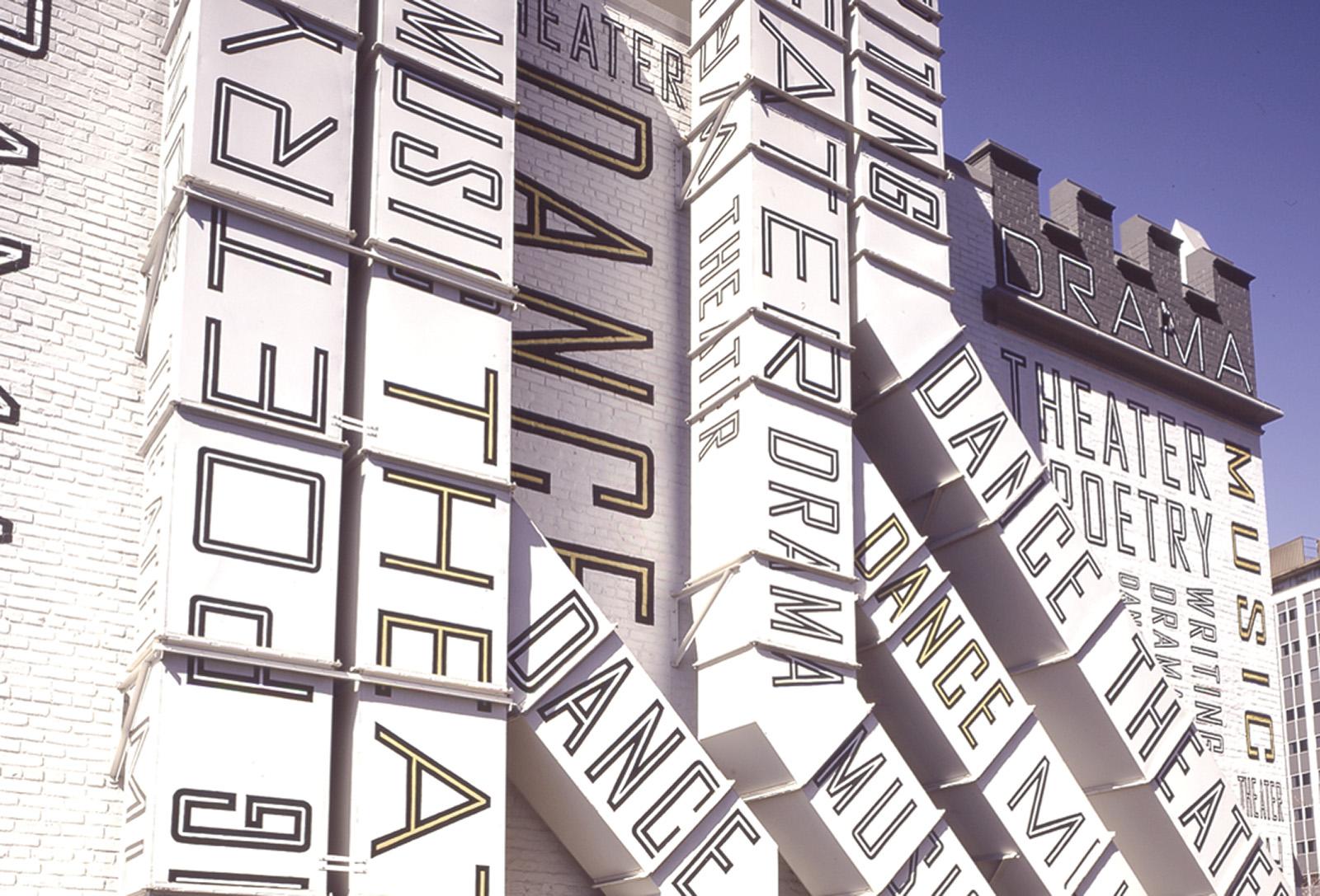 24–60. Pentagram (Paula Scher), painted exterior of the Lucent Technologies Center for Arts Education, a school affiliated with the New Jersey Performing Arts Center in Newark