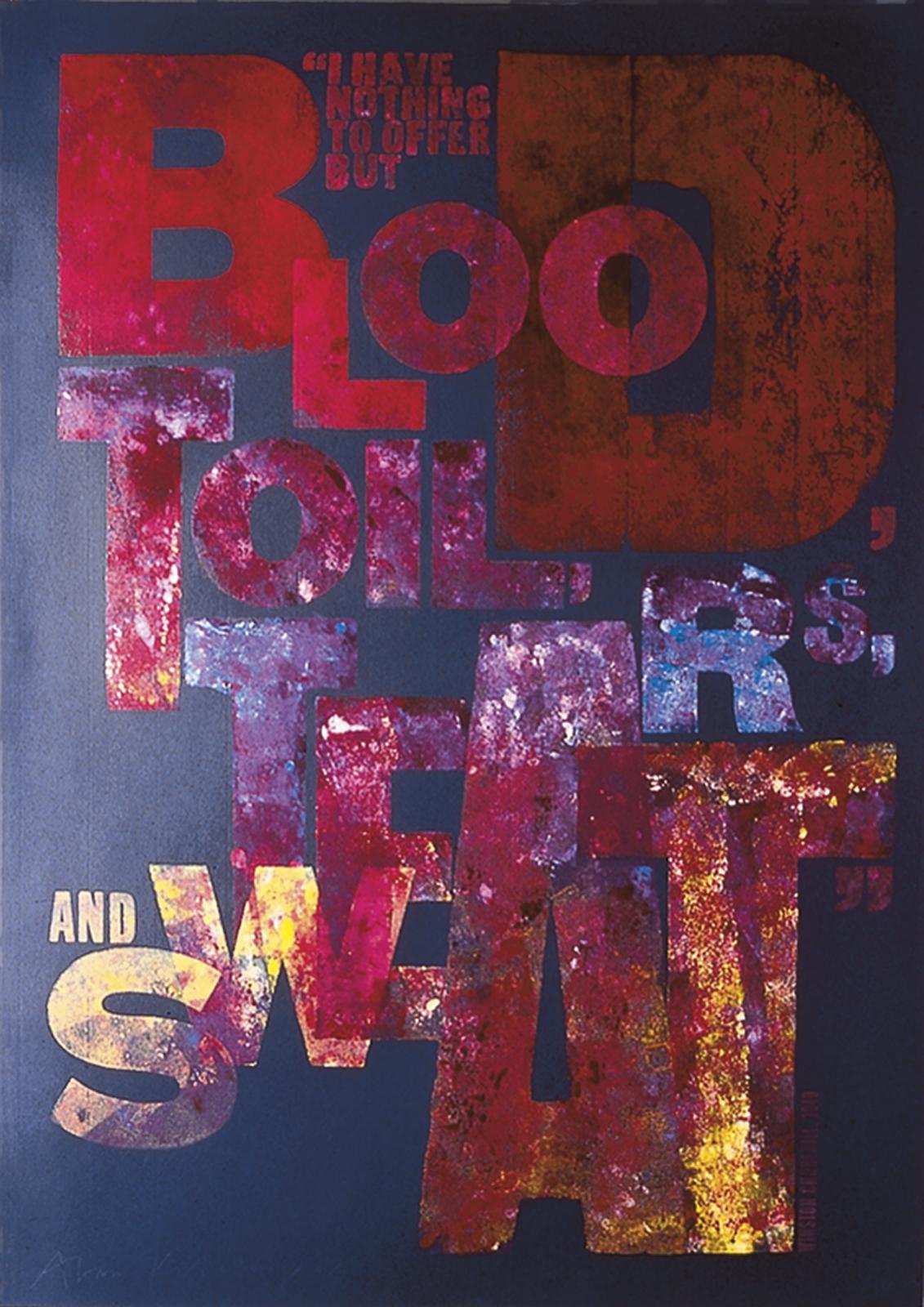 24–95. Alan Kitching, “Blood, Toil, Tears, and Sweat,” letterpress edition print