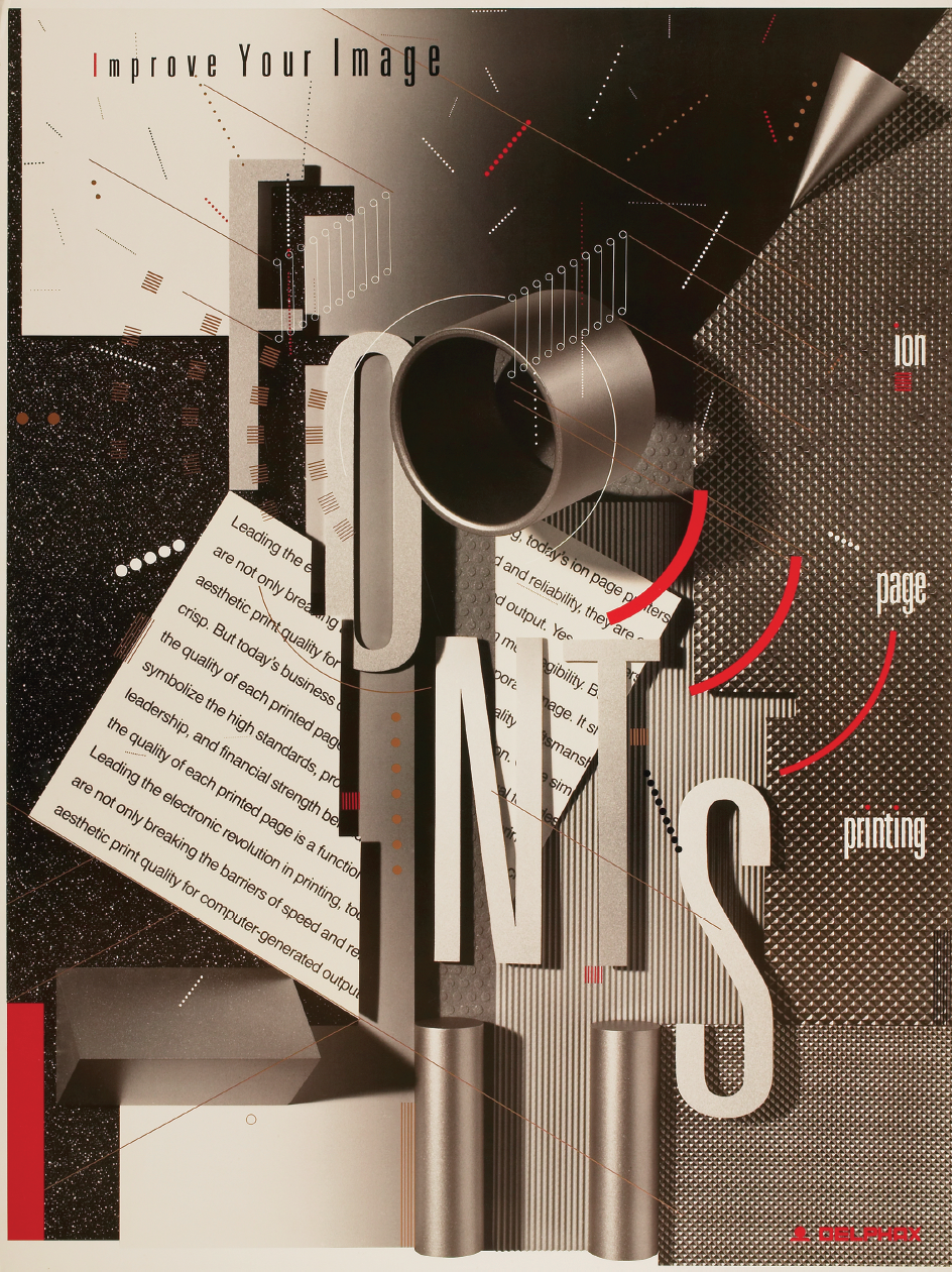 24–73. Skolos, Wedell + Raynor, poster for Delphax Fonts
