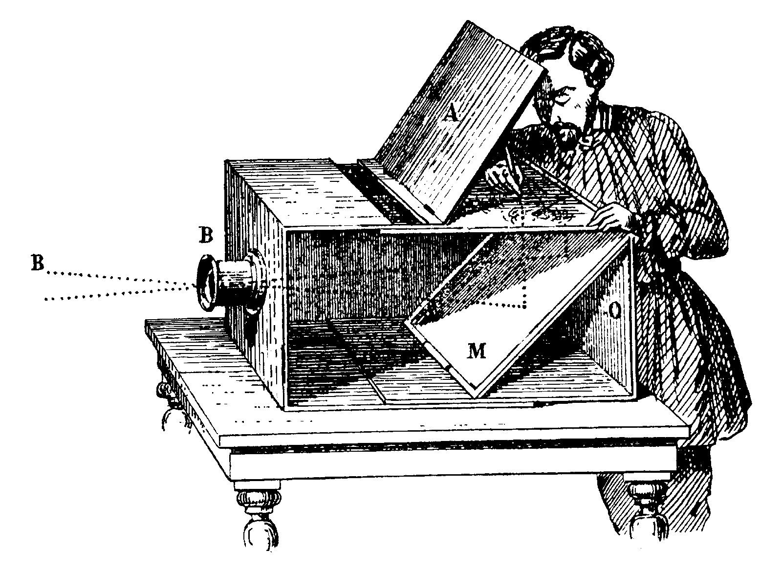 9–25. As this nineteenth-century camera obscura demonstrates, the optical principles of photography were well understood and used by artists to aid in drawing.